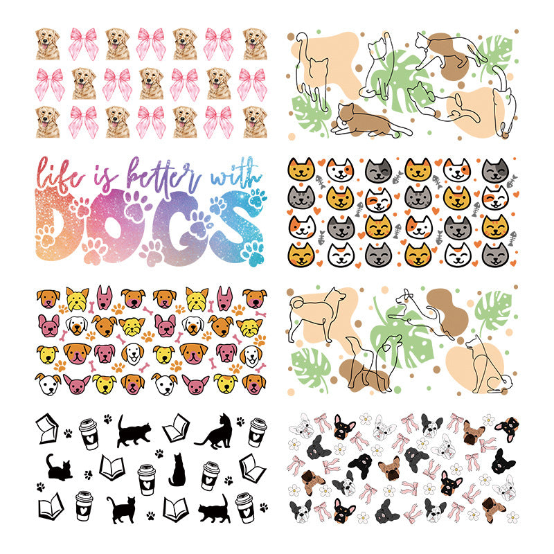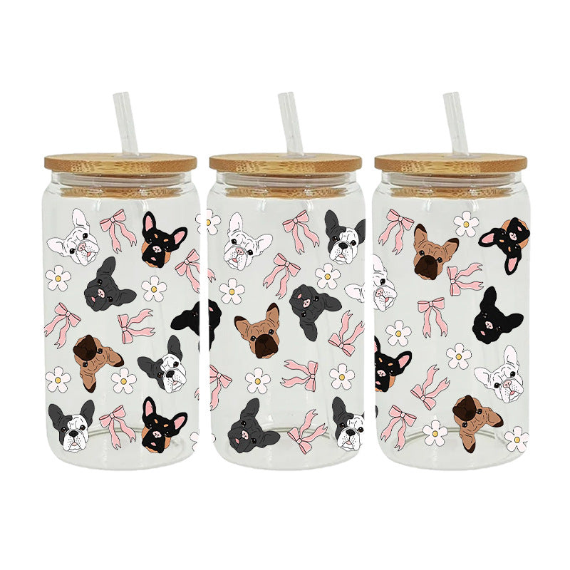 Wholesale Cute cat dog bow 16oz Cup UV DTF Wraps