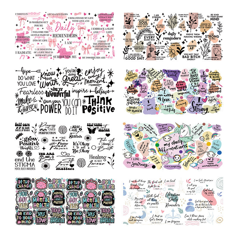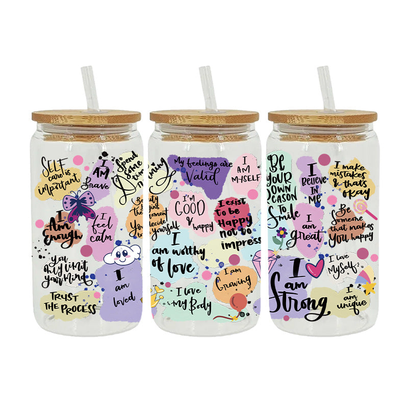 Wholesale Colorful English sentences 16oz Cup UV DTF Wraps