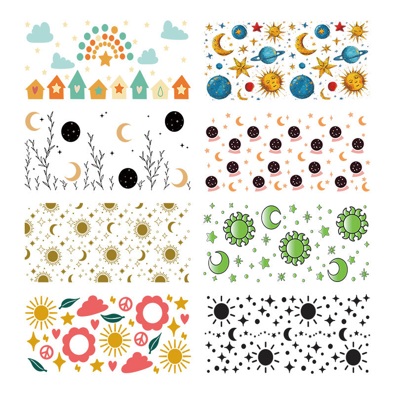 Wholesale Colorful Sun Moon Planet 16oz Cup UV DTF Wraps