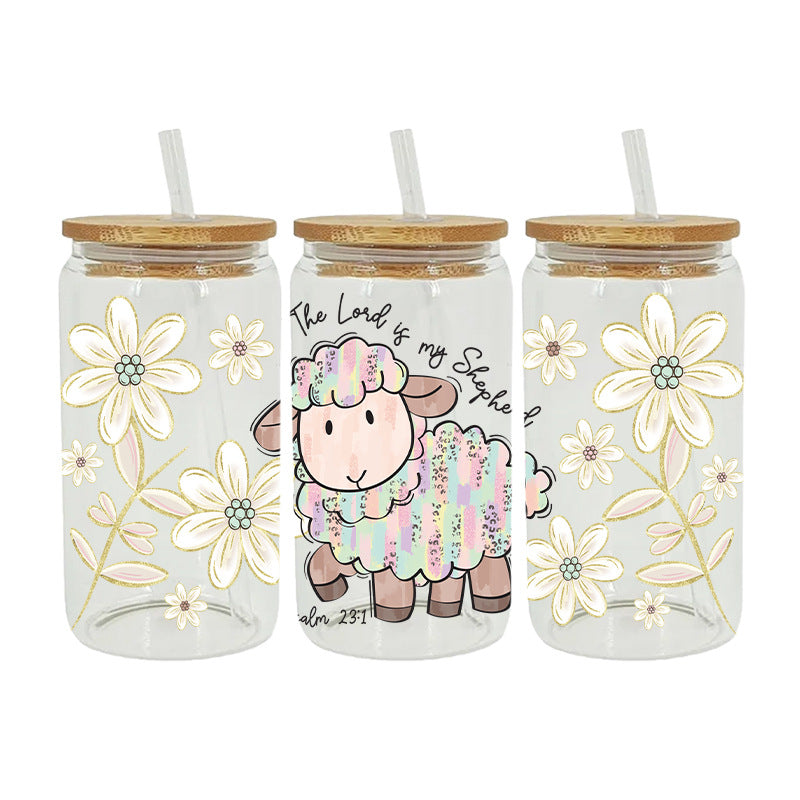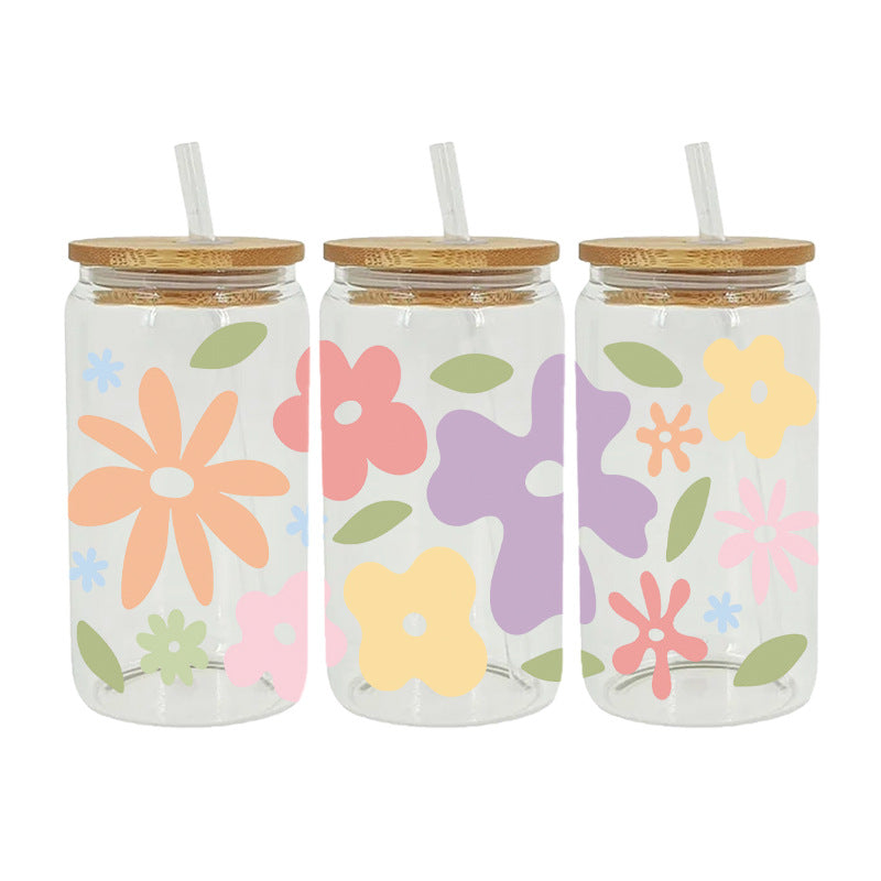 Wholesale colorful flowers 16oz Cup UV DTF Wraps