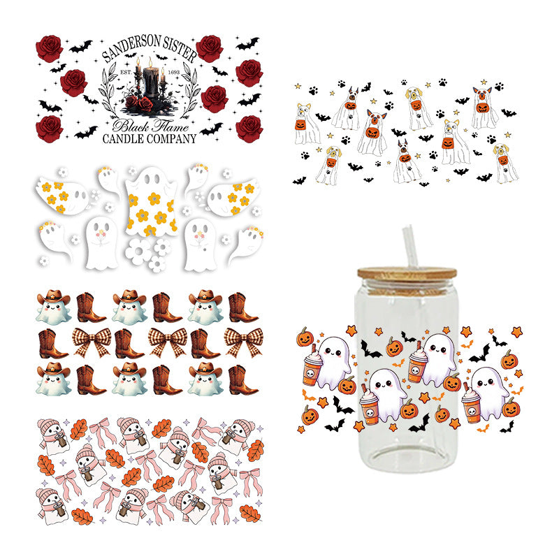 Wholesale Pumpkin Ghost Halloween 16oz Cup UV DTF Wraps