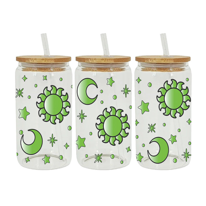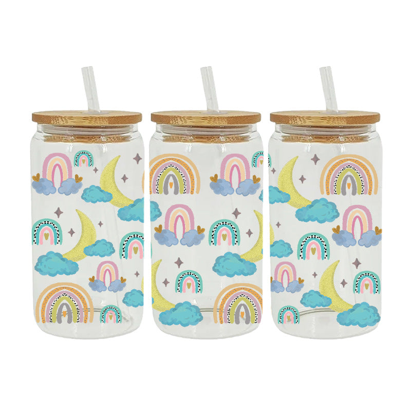 Wholesale Sun Moon Star Rainbow 16oz Cup UV DTF Wraps
