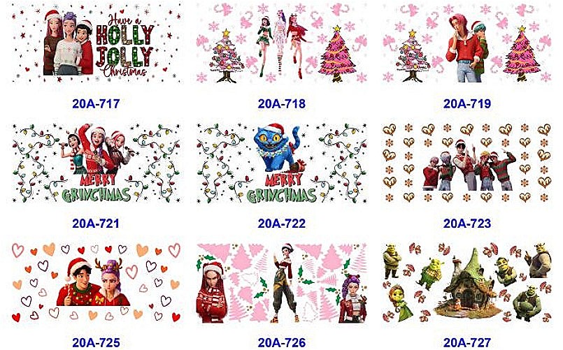 Wholesale 5pcs Christmas Characters 16oz Single-Sided Cup Stickers