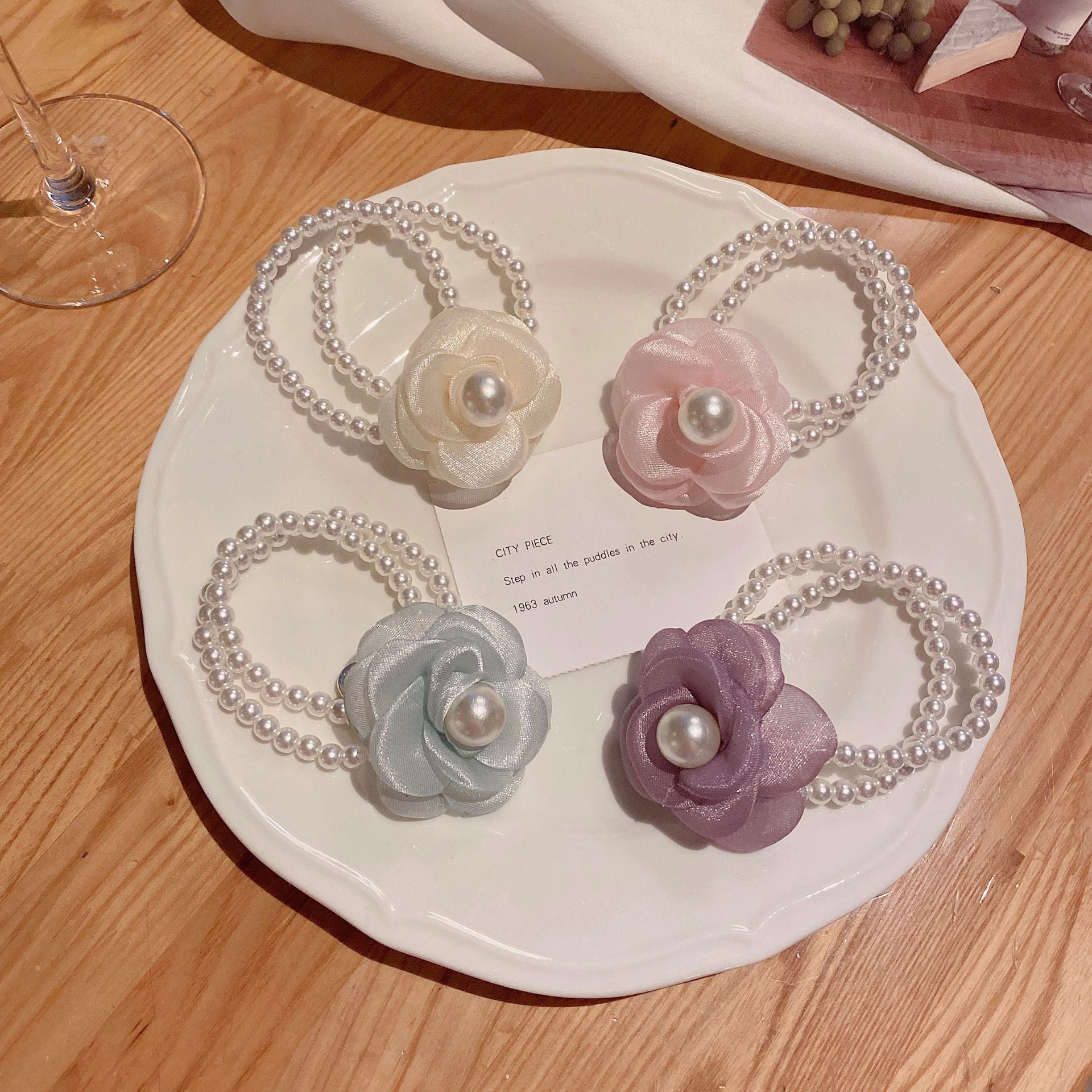 Wholesale Flower Artificial Pearl Cloth Hair Scrunchies