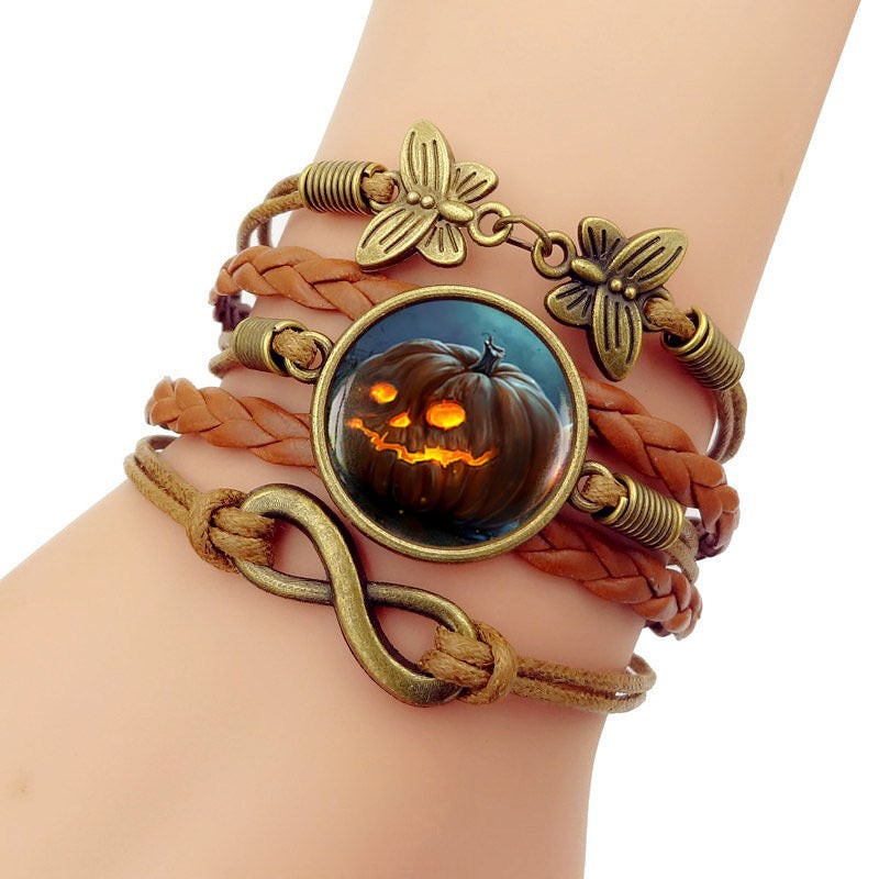 Wholesale Halloween Pumpkin Time Gem Butterfly 8 Word Hand Woven Alloy Bracelet