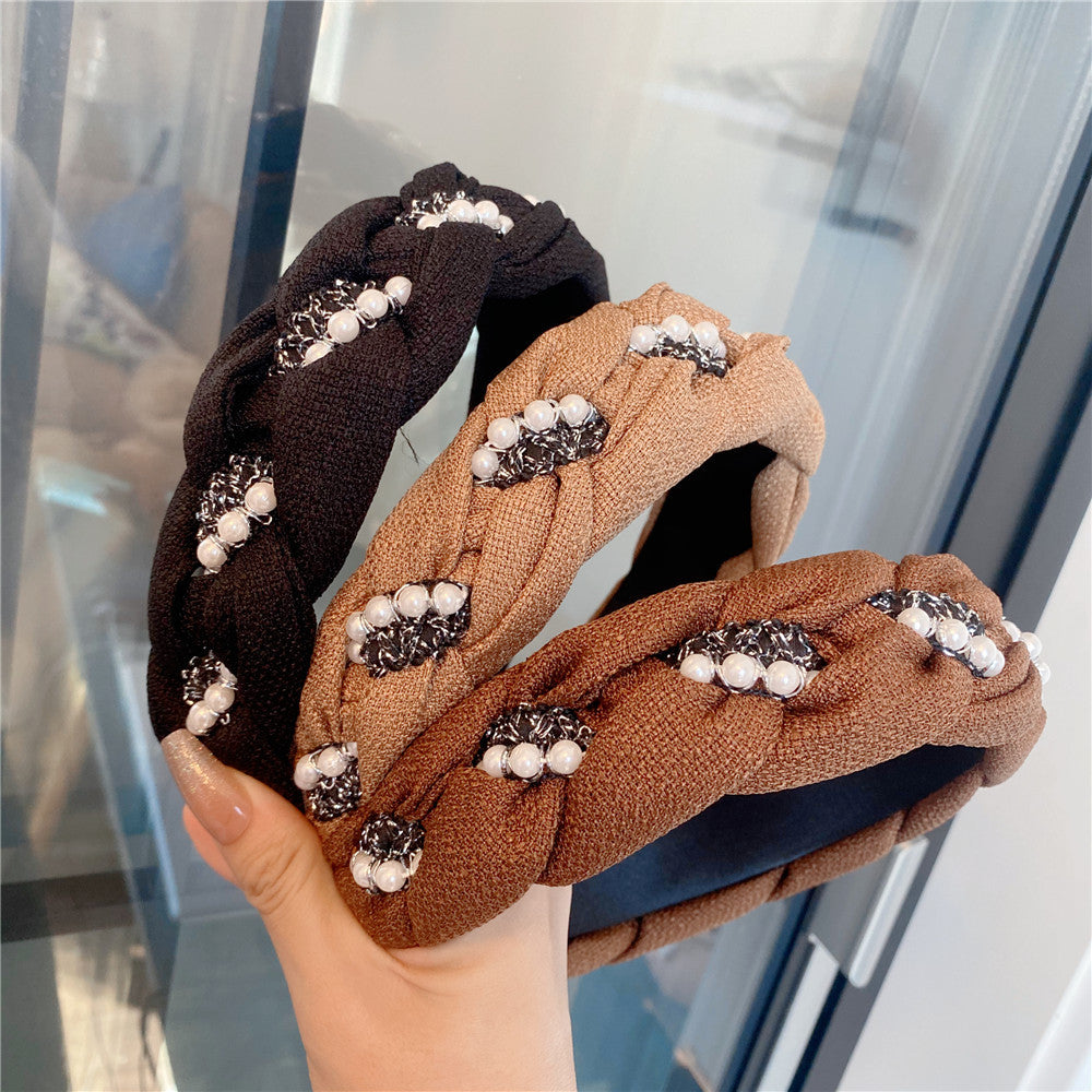 Wholesale Autumn and Winter Style French Retro Wide-brimmed High Skull Pearl Braided Headband
