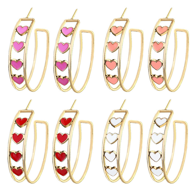Wholesale Valentine's Day Gift Fashion Love Series Double Circle Red and Pink Trendy Earrings