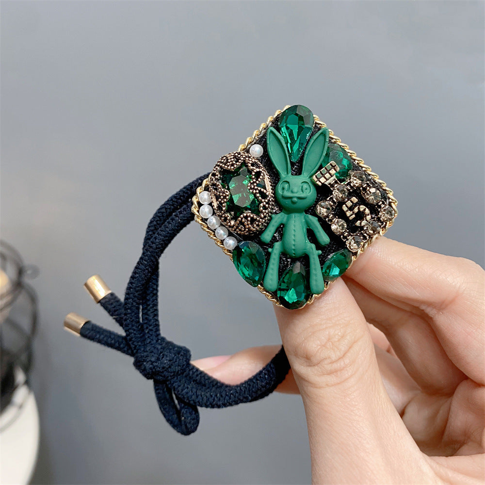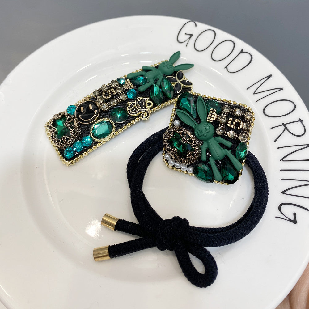 Wholesale Dark Green Rhinestone Bunny Hair Clip
