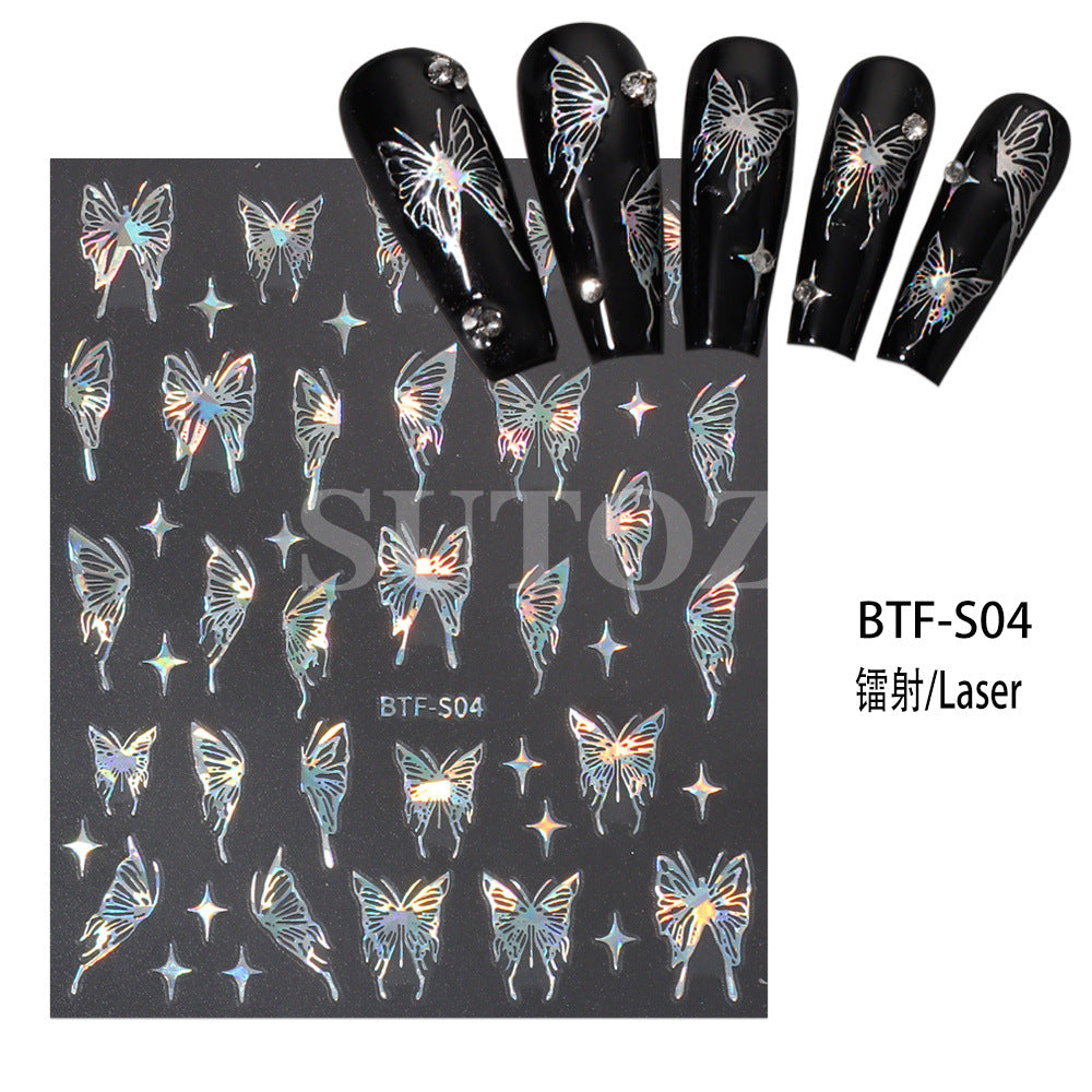 Wholesale Liquid Metal Butterfly Plastic Nail Stickers