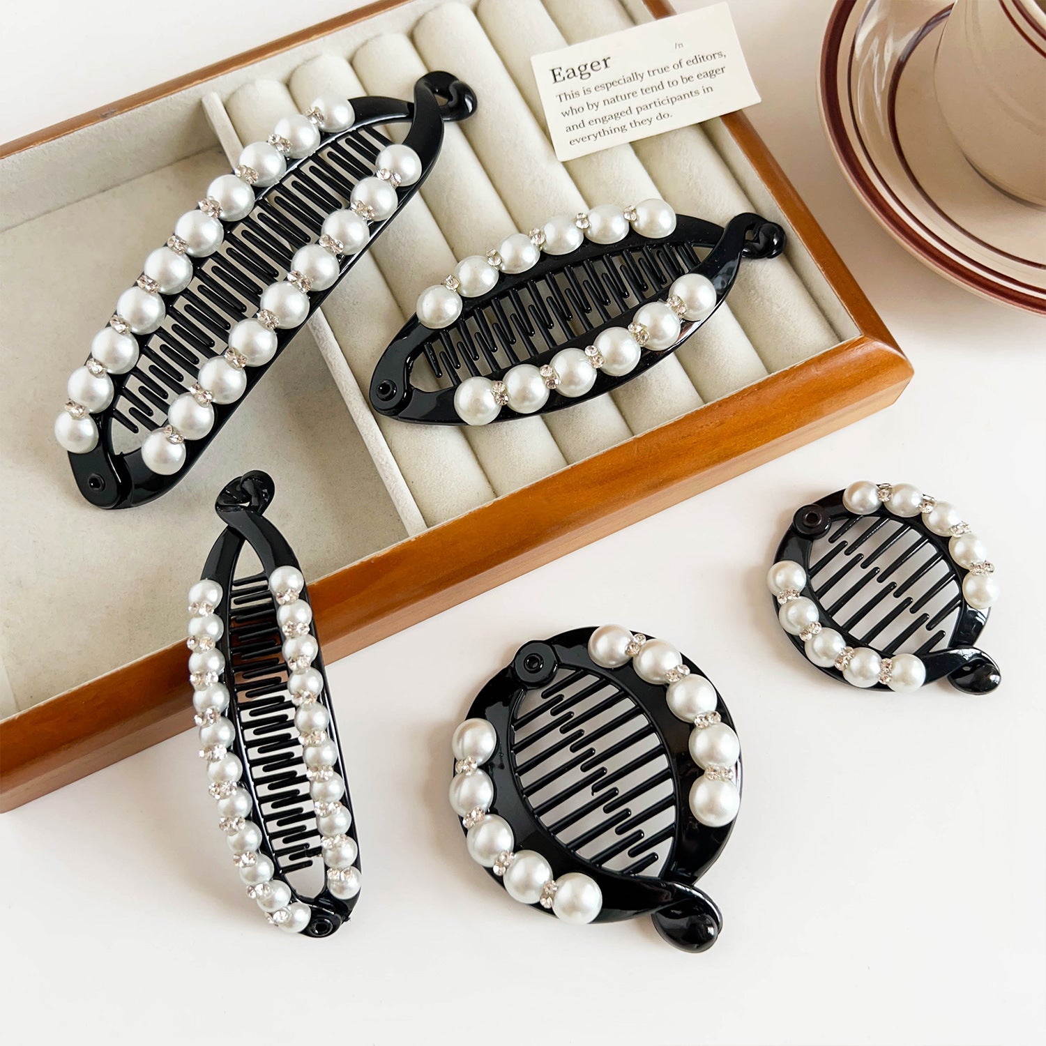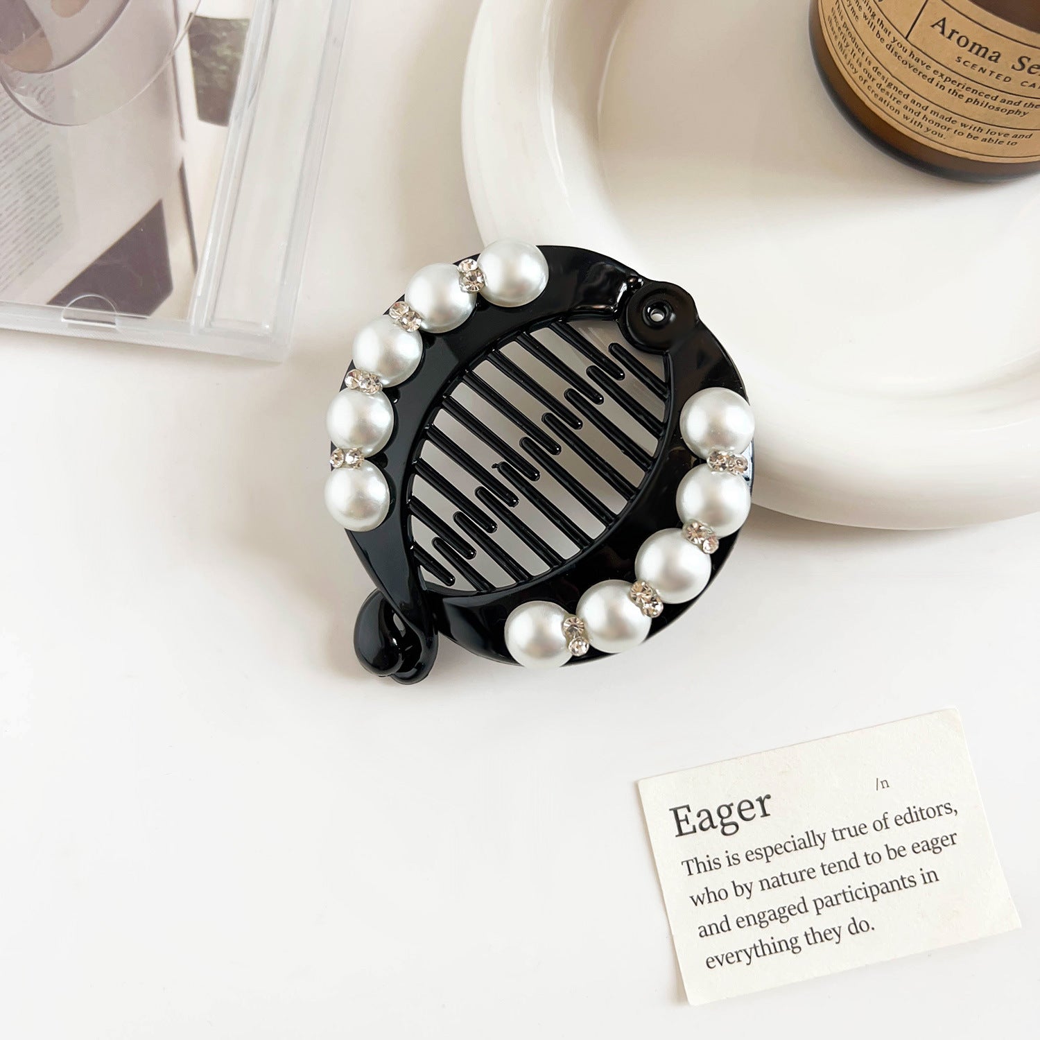 Wholesale Pearl Diamond Hairpin Broken Hair Black Paddle Clip Women's Hair Accessories