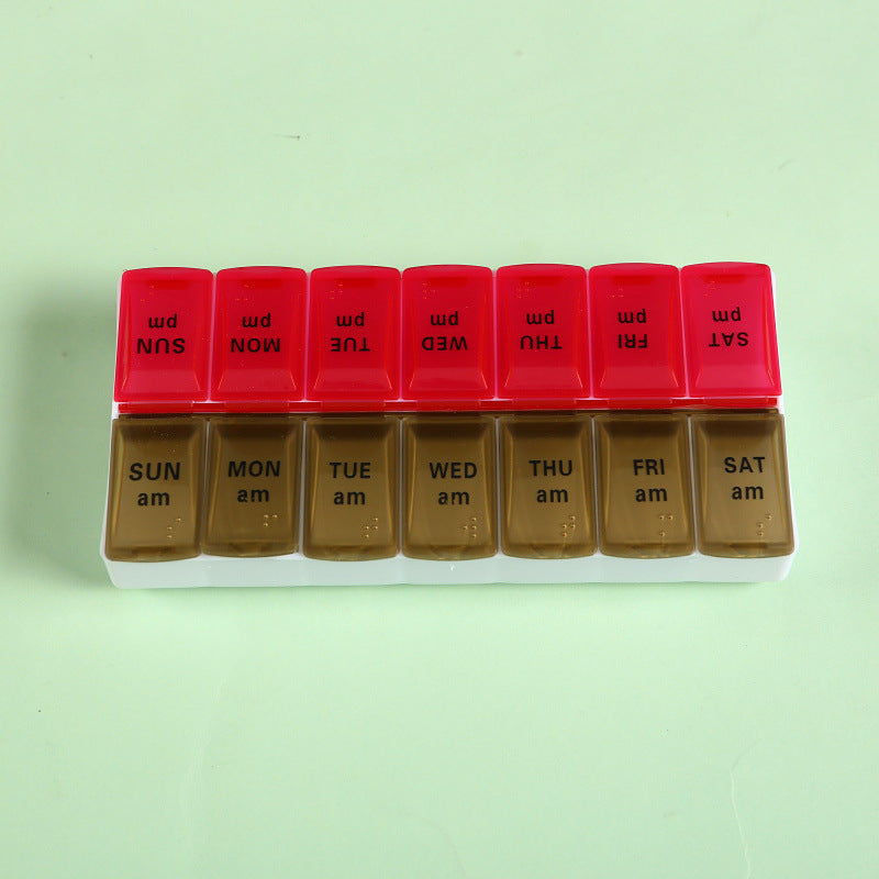 Wholesale PP Double Row Packaging 4-compartment Open Lid Portable Small Medicine Box