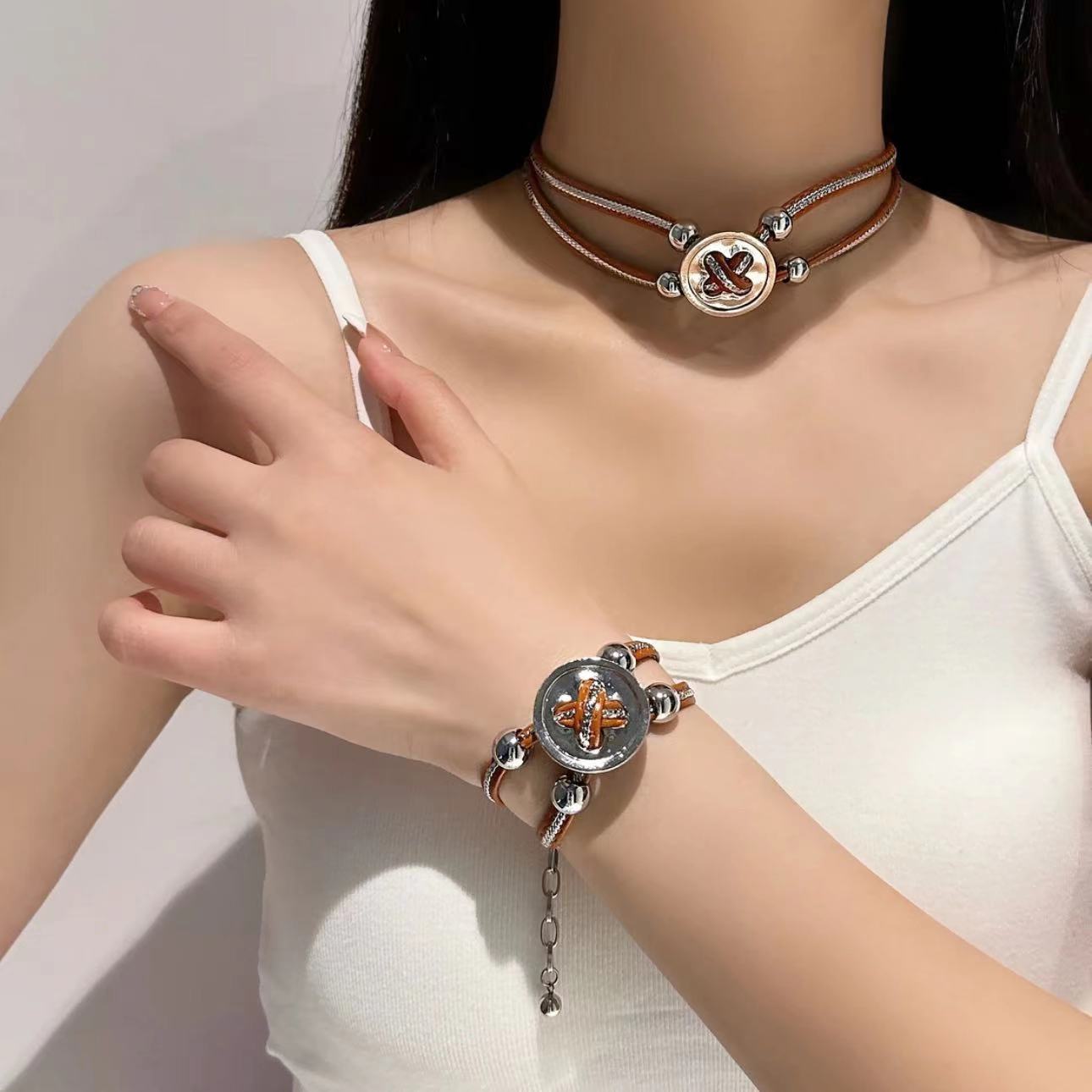 Wholesale Button Leather Cord Clavicle Chain Bracelet