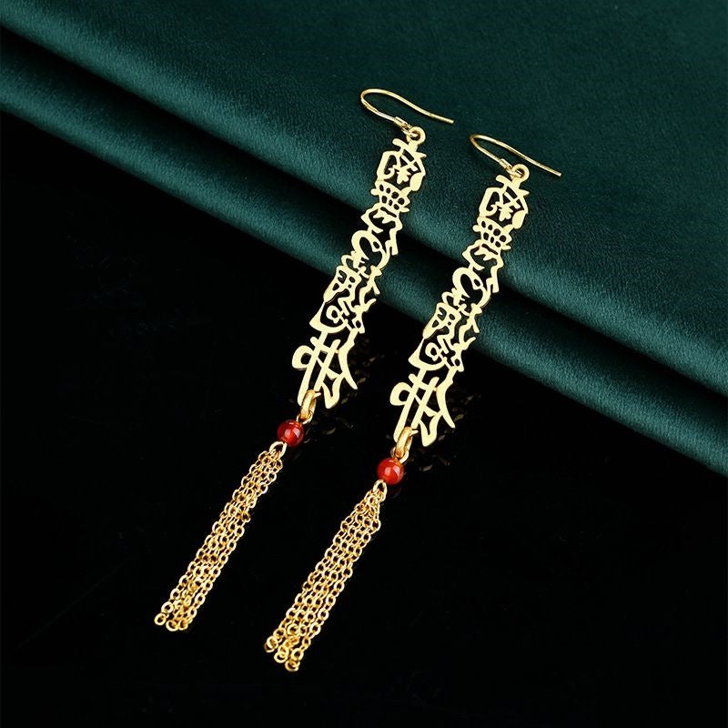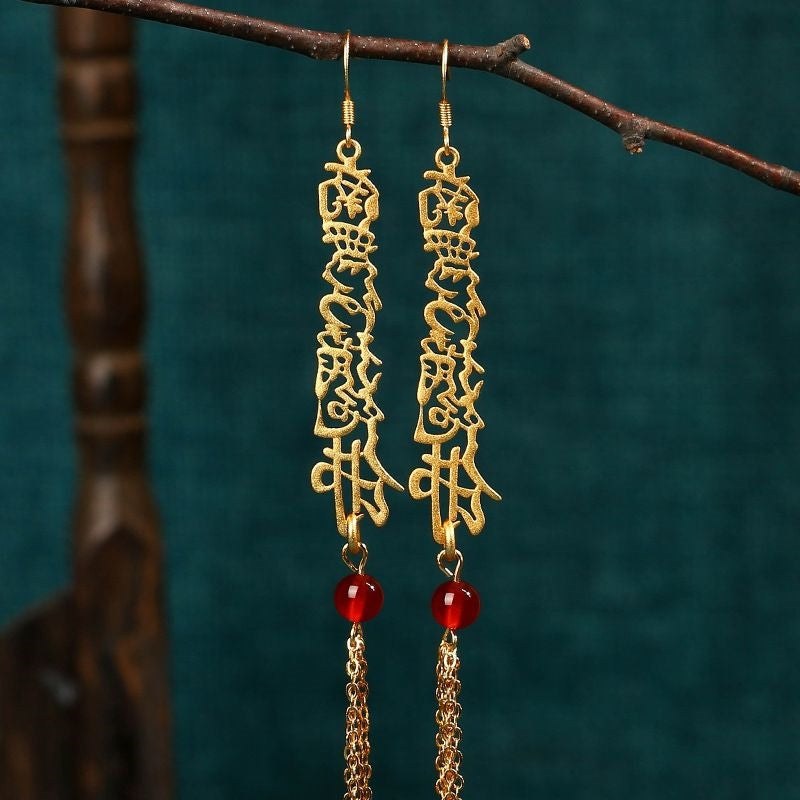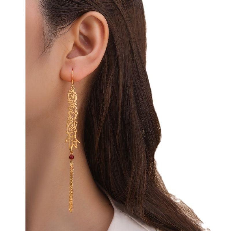 Wholesale Chinese Style Long Scripture Nanwo Amitabha Tassel Earrings National Style Not Falling Chinese Valentine's Day Gift Souvenir