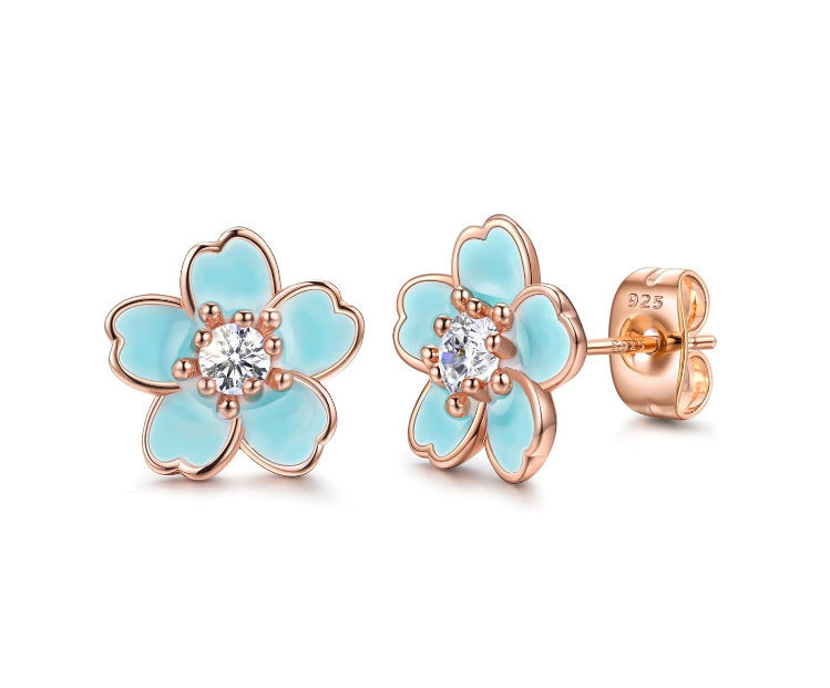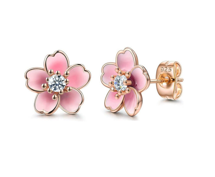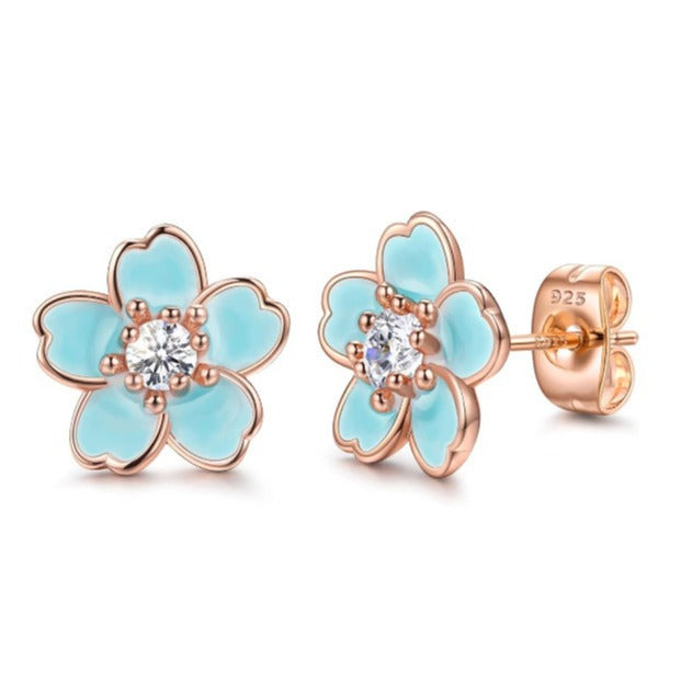 Wholesale Cute and Versatile Multi-color Cherry Blossom Earrings