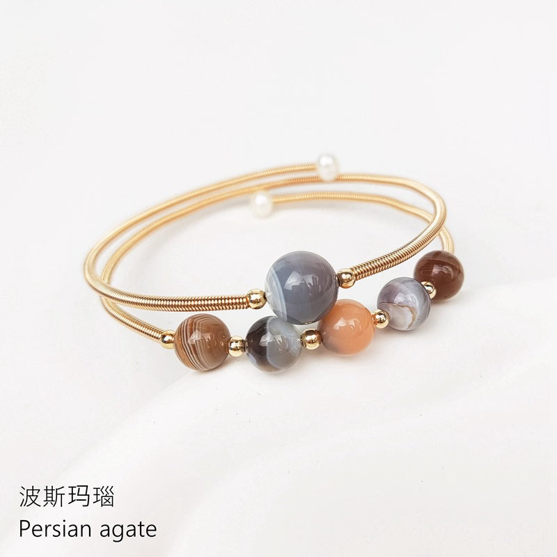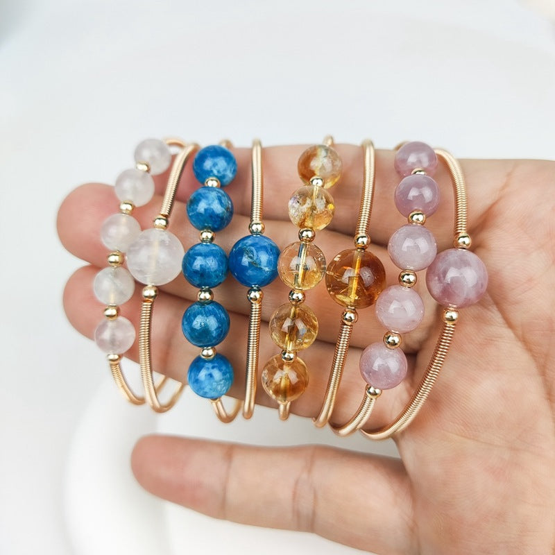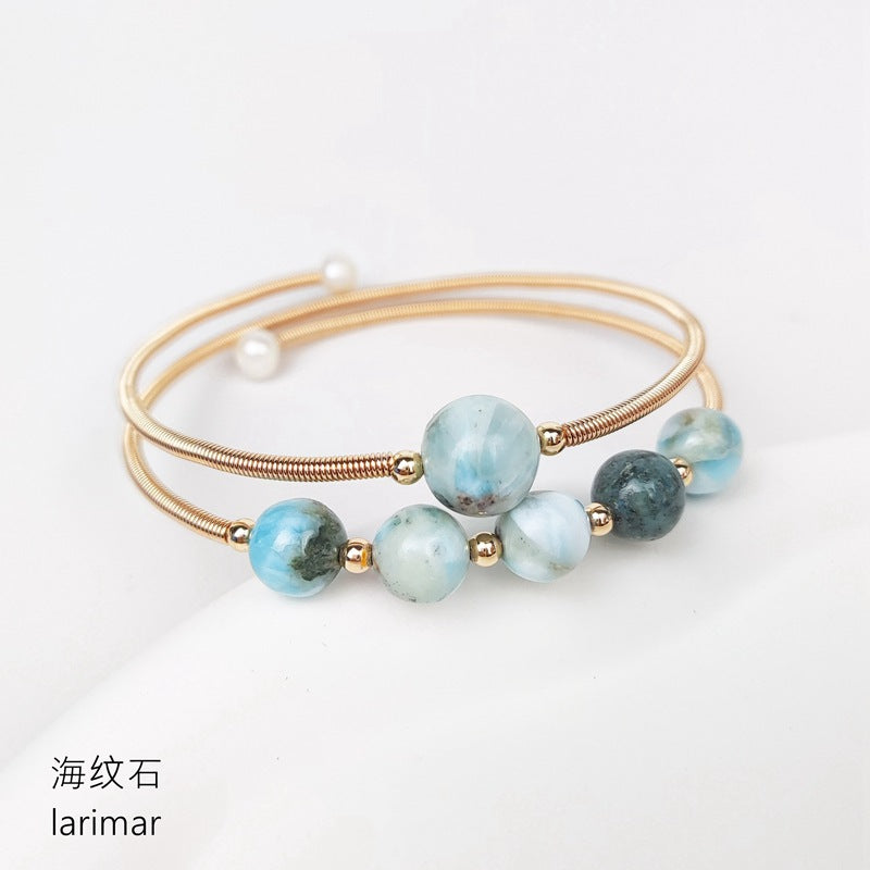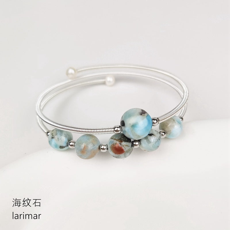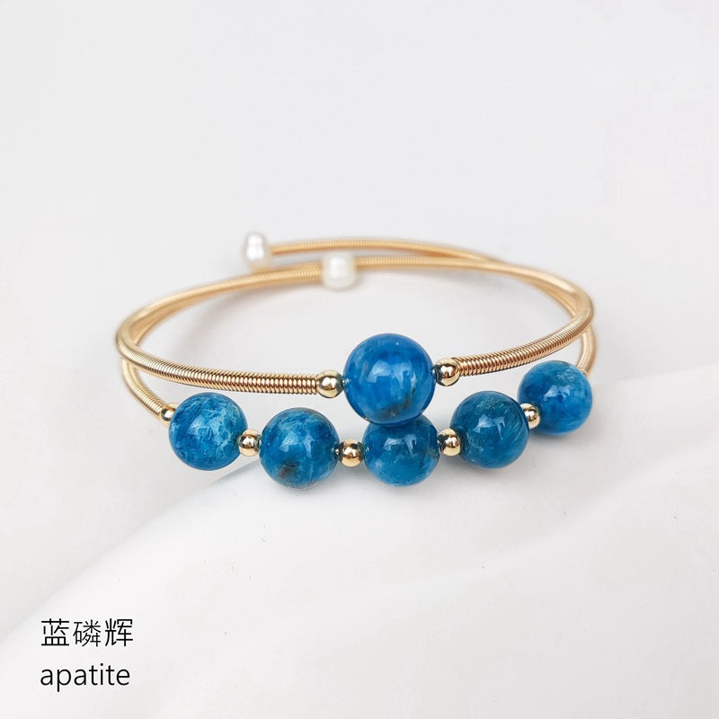 Wholesale Natural Crystal Blue Phosphorus Radiant Natural Stone Irregular Wrapped Silk Handmade Wrapped Wire Bracelet