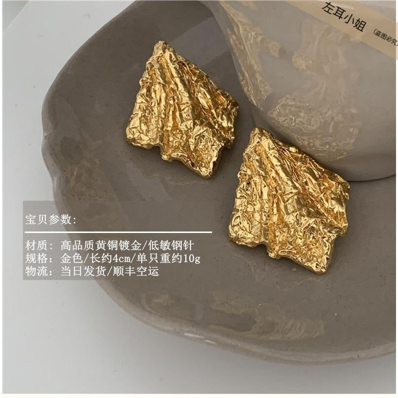 Wholesale retro tin foil pleated earrings women's fashionable irregular temperament earrings trendy earrings