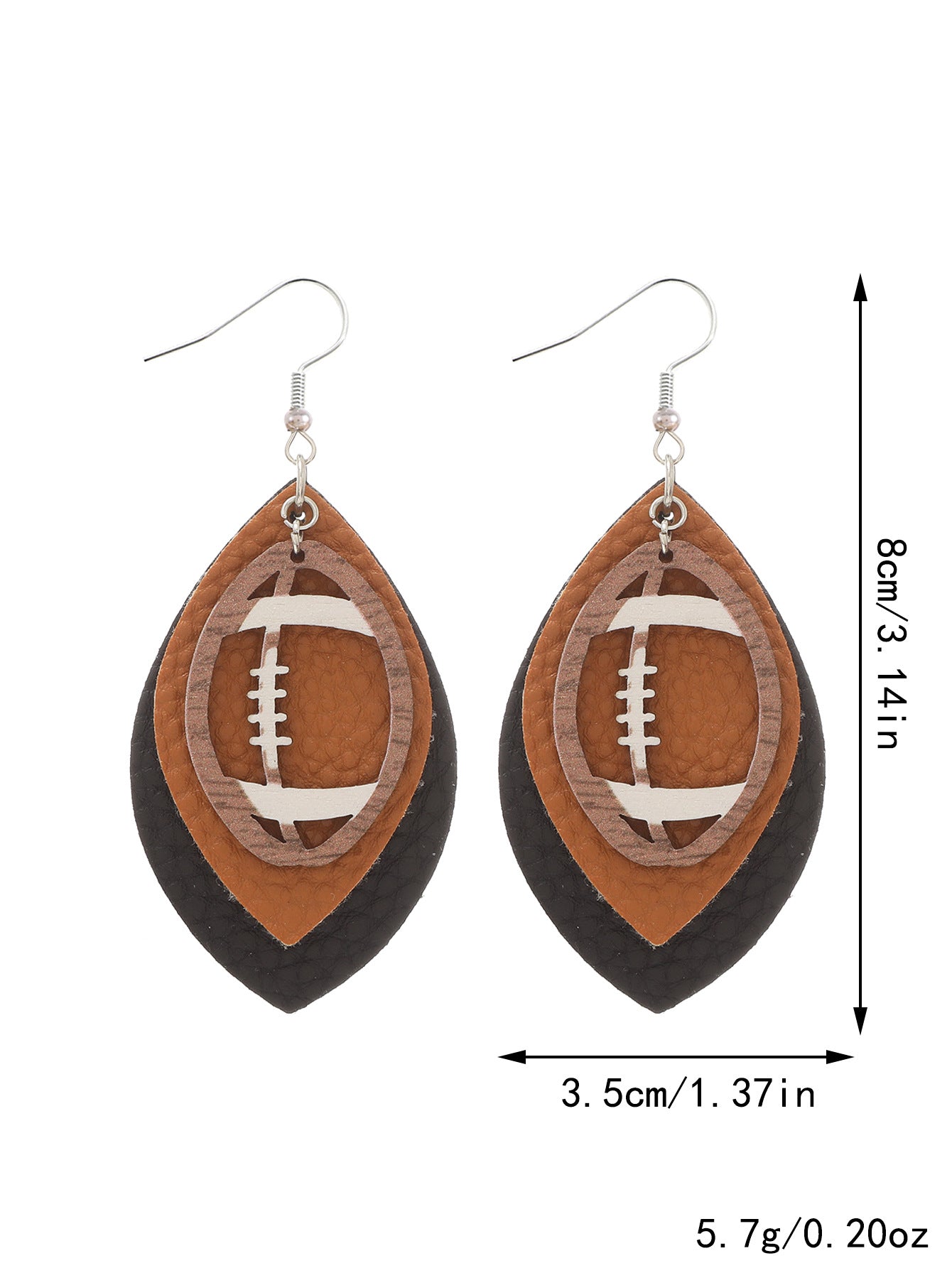 Wholesale Sports Style Rugby Brown Leopard Print Leaf Three-layer Leather Dot Diamond Rugby Earrings