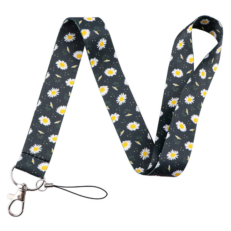Wholesale 10pcs Small Daisy Lavender Flower Mobile Phone Lanyard Long Camera Work ID Durable Neck Lanyard