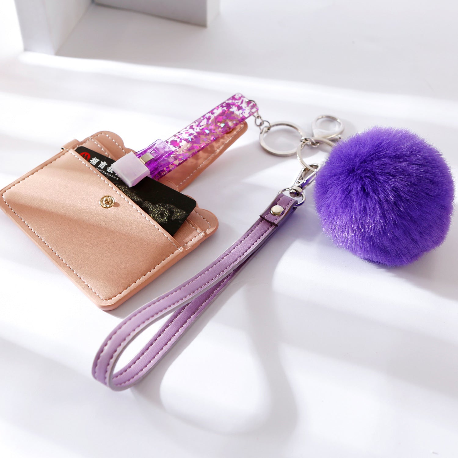 Wholesale Acrylic Leather Contactless ATM Card Grabber Card Taker Hair Ball Keychain Wristlet