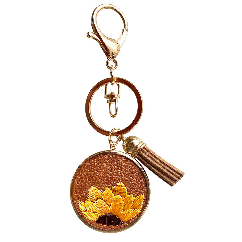 Wholesale 3PCS/PACK Leather Embroidery Sunflower Keychains