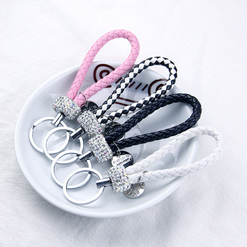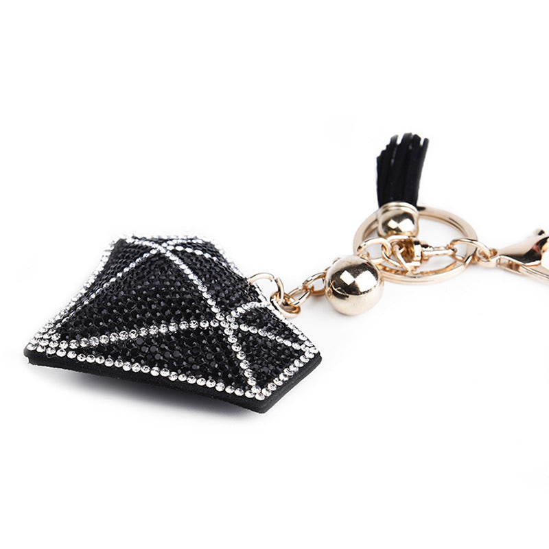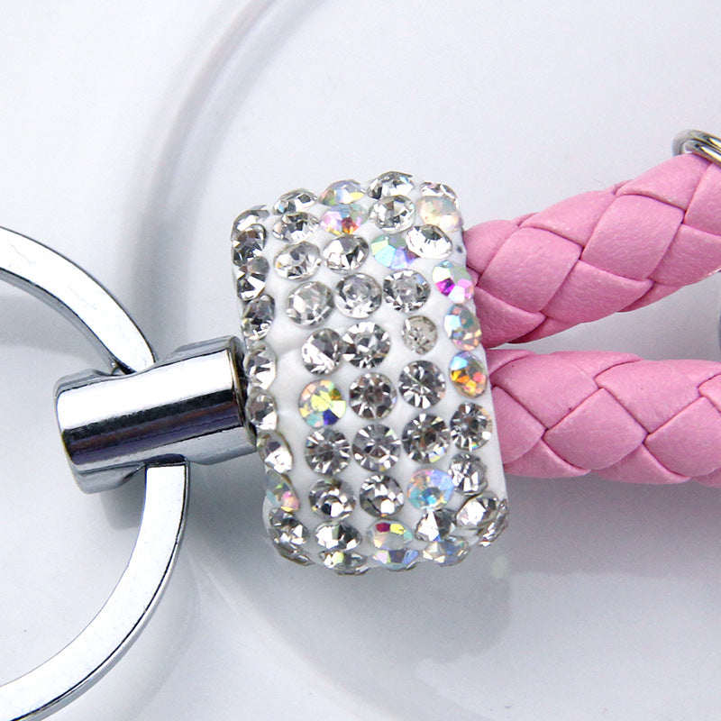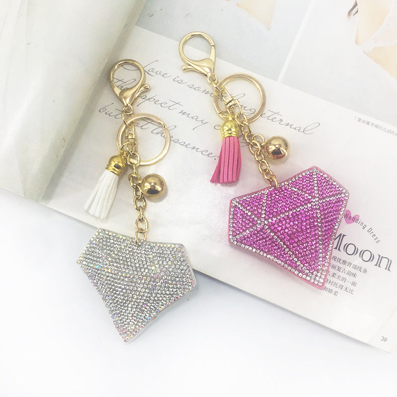 Wholesale Diamond Studded Peach Heart Tassel Leather Keychain