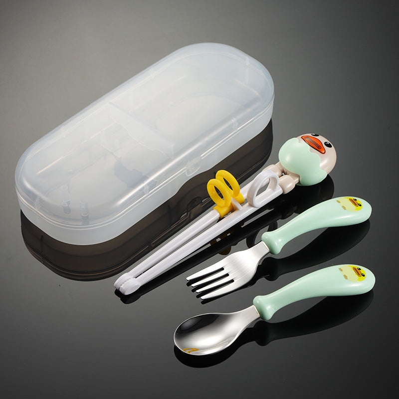 Wholesale Stainless Steel Children's Fork Spoon Practice Chopsticks 10PCS