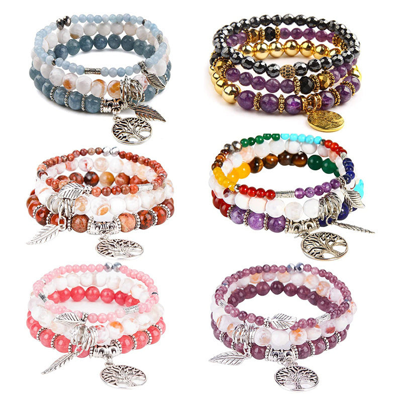 Wholesale Tree of Life Bracelet Turquoise Jasper Agate Gemstone Beaded Bracelet