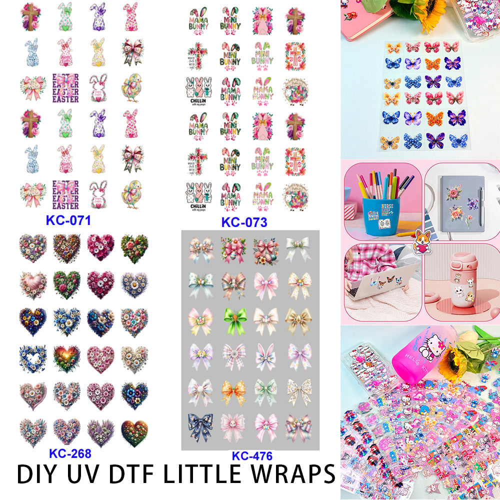 Wholesale 2/5/10pcs Cross Letter Rabbit Flower Love Bow Easter DIY UV DTF Little Wraps for Phone Case Cup Notebook Bookmark Card Holder Blank OLY-UDW-OSM009