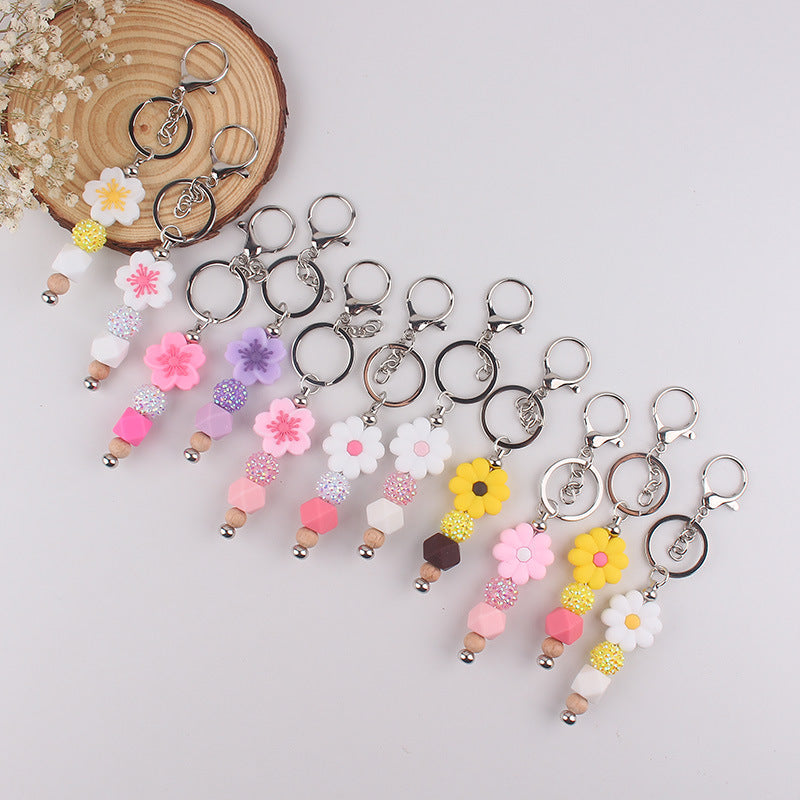 Wholesale Begonia Daisy Flower Beaded Tassel Keychain