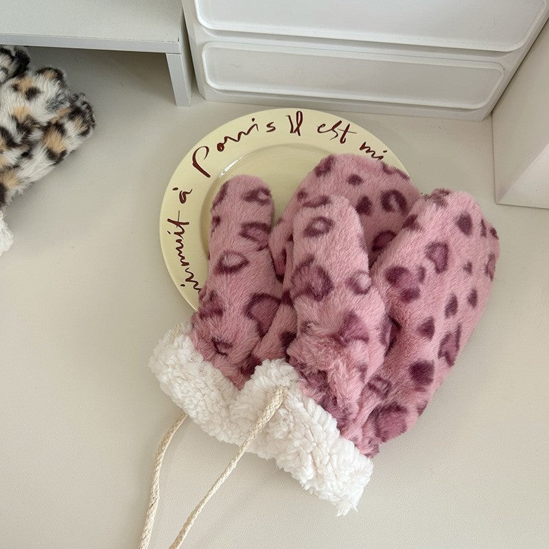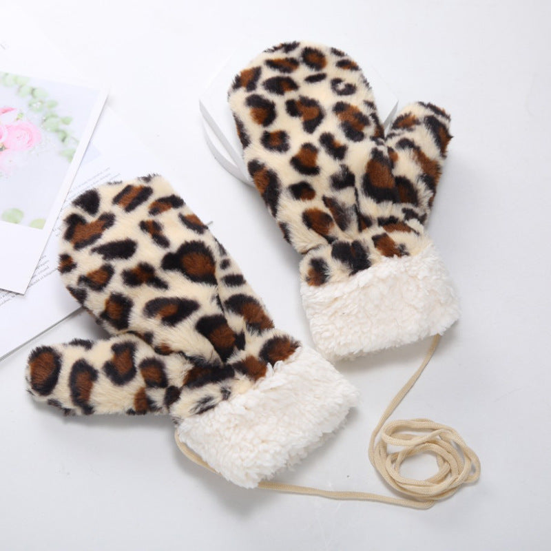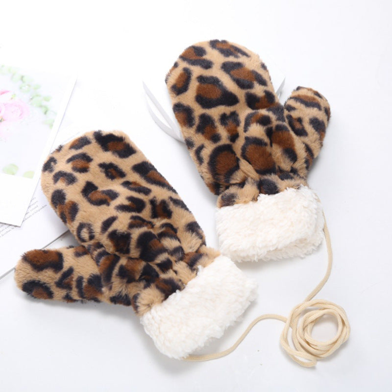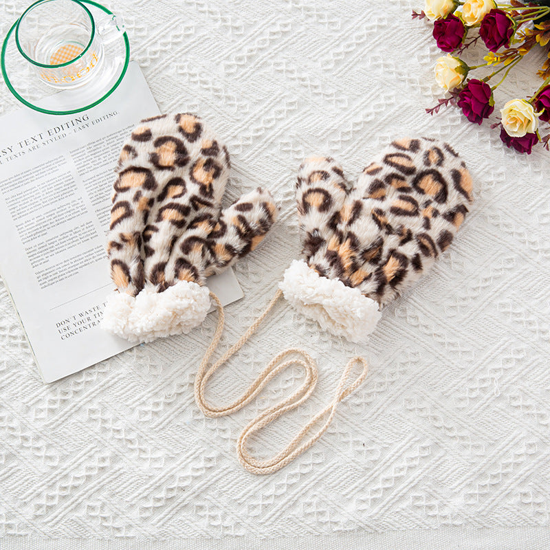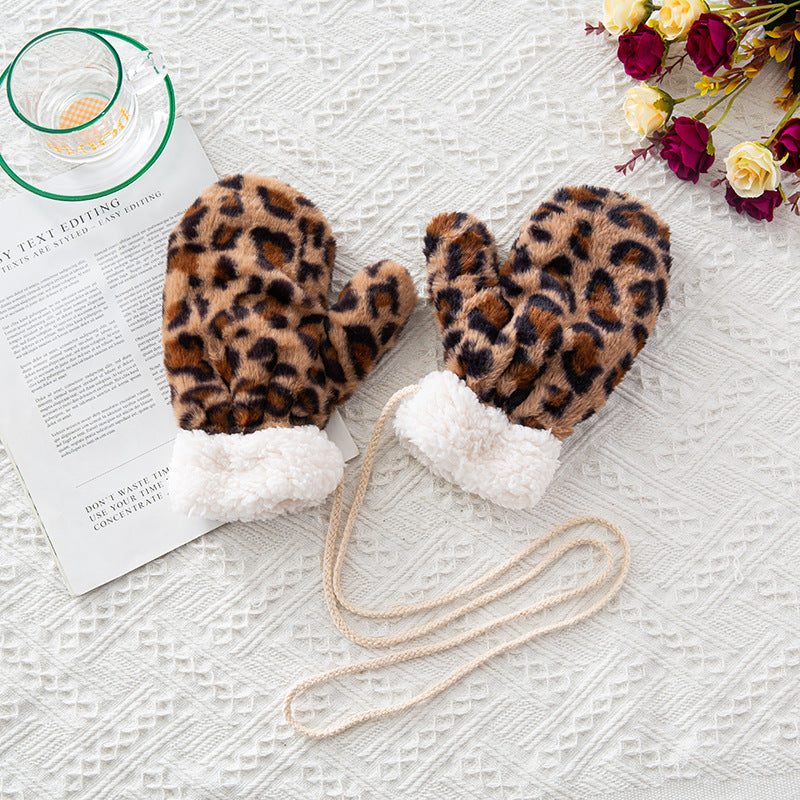 Wholesale Camel Wool Warm Retro with Thick Leopard Print Gloves