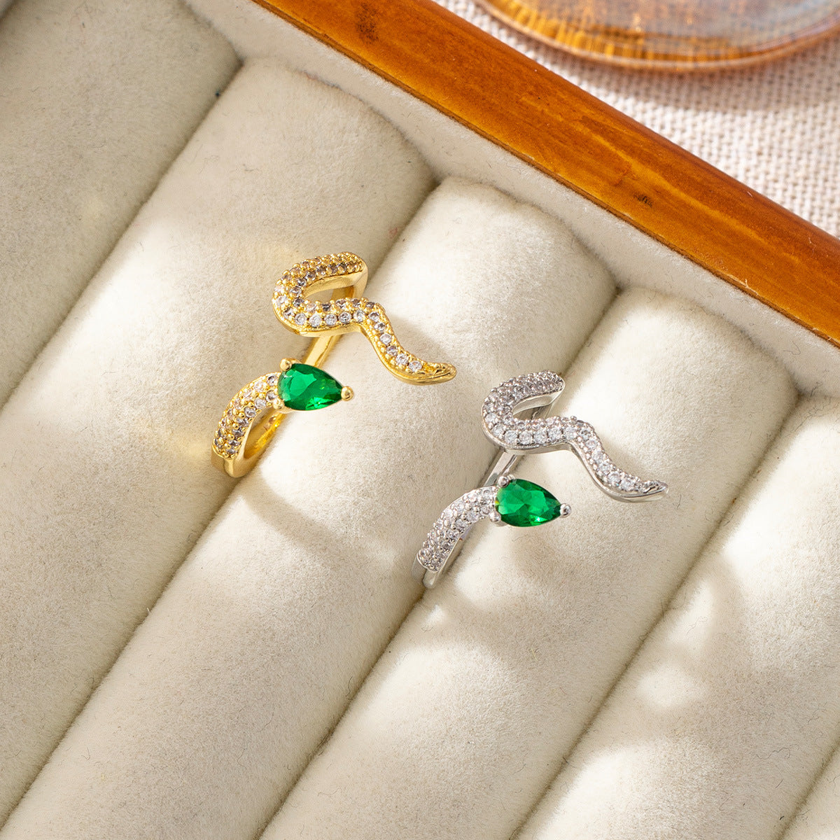 Wholesale Green Zircon Cool Cool Tide Wave Small Snake Open Ring