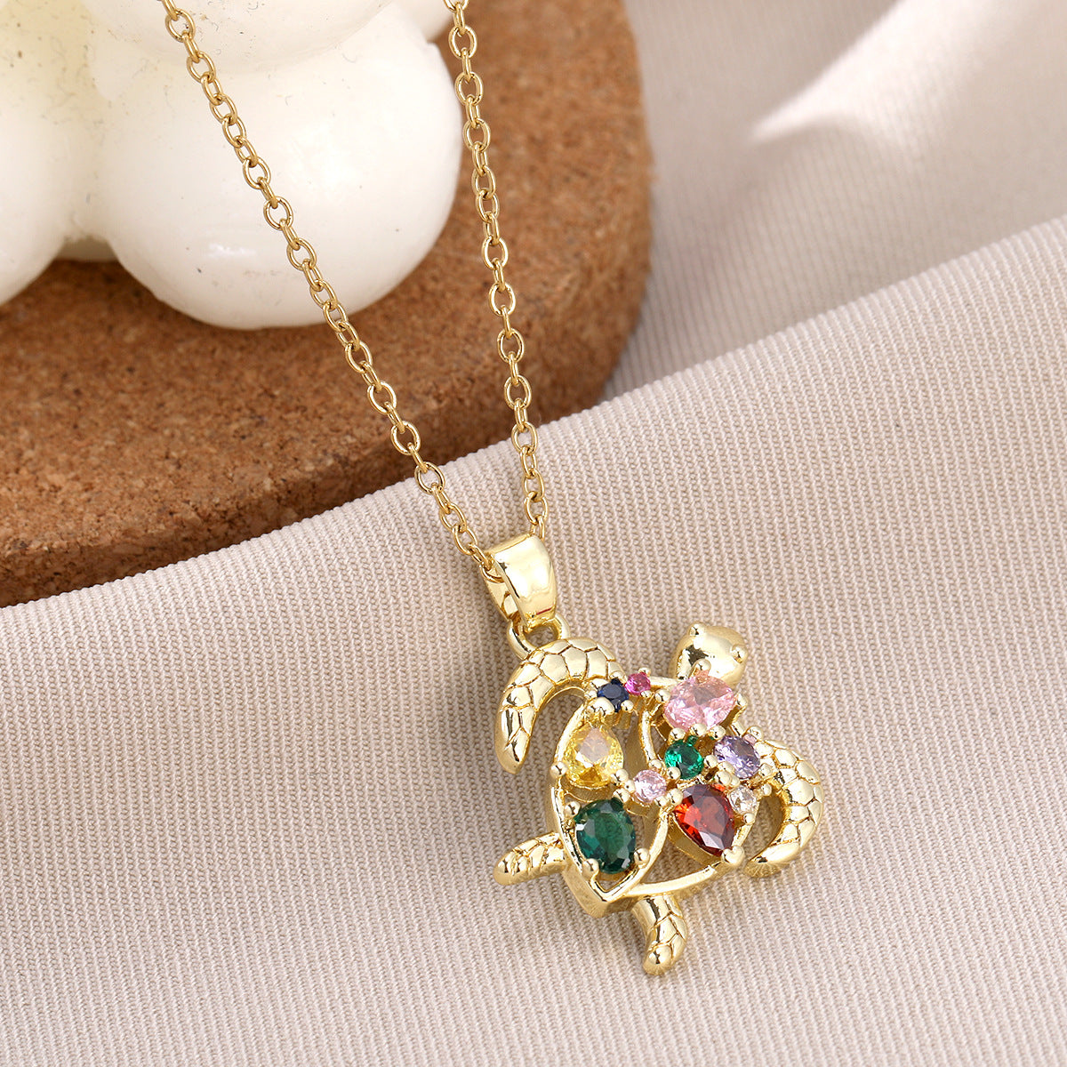 Wholesale Personality Fashion Inlaid with Colorful Zircon Marine Animal Turtle Crab Necklace