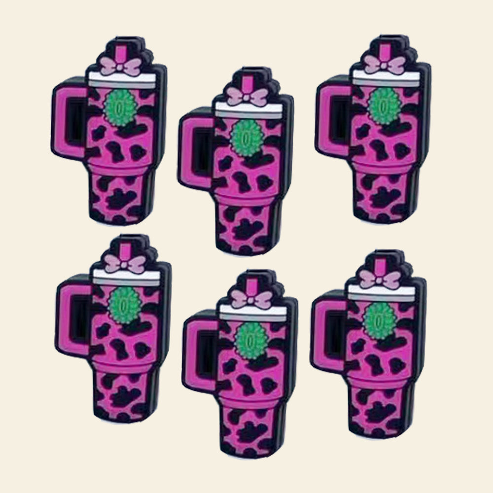 Wholesale 10pcs Pink Leopard Print Water Cup Cartoon Silicone Beads