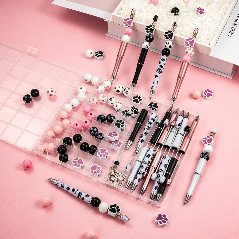 Wholesale 28-grid Valentine's Day DIY Kit Puppy Paw Silicone Wooden Bead Spacer Pen