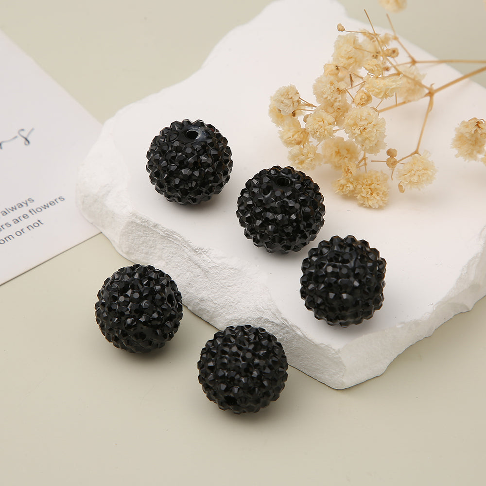 Wholesale 5pcs 20MM Solid Color Black Rhinestone Beads Bubblegum Beads