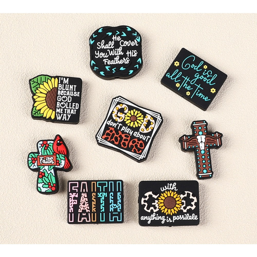 Wholesale 20pcs Sunflower Letter Cross Pattern Silicone Beads