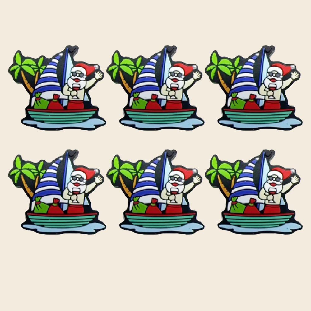 Wholesale 10pcs Cartoon Santa Claus Beach Vacation Pattern Silicone Beads