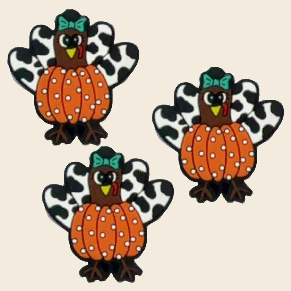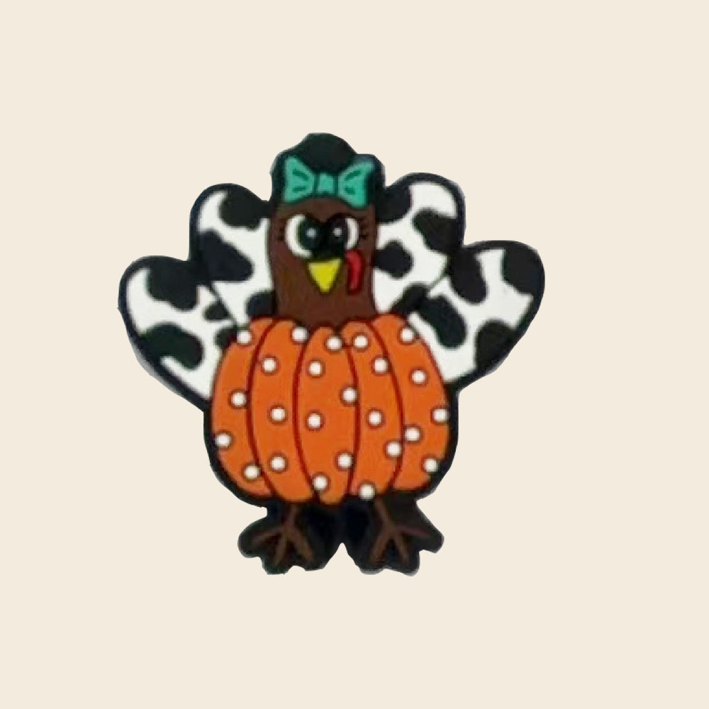 Wholesale 10pcs Cartoon Thanksgiving Milk Pattern Turkey Silicone Beads