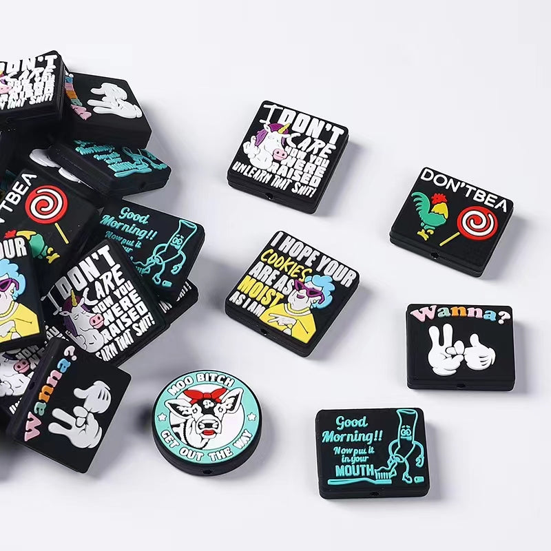 Wholesale 20pcs Cartoon Cow Rooster Gesture Letter Pattern Silicone Beads