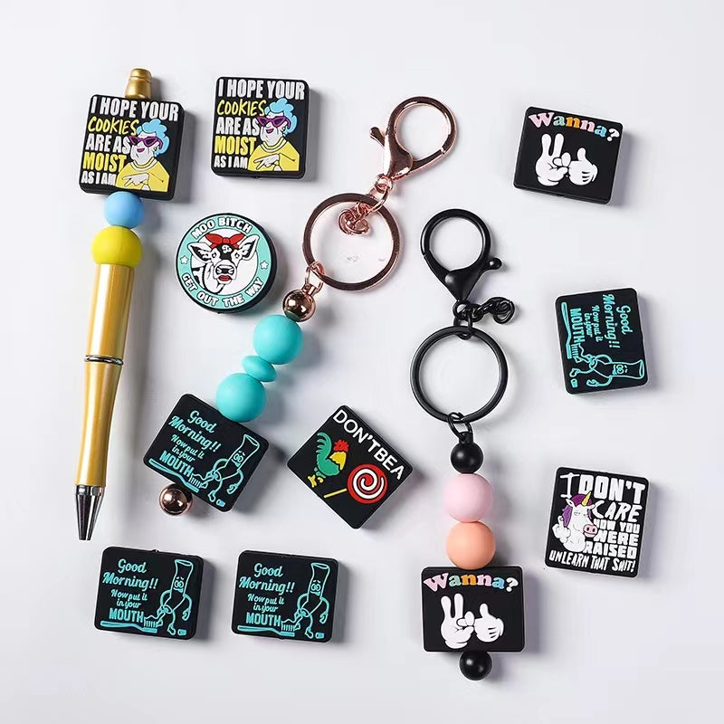 Wholesale 10pcs Cartoon Flower Letters Cross Pattern Silicone Beads