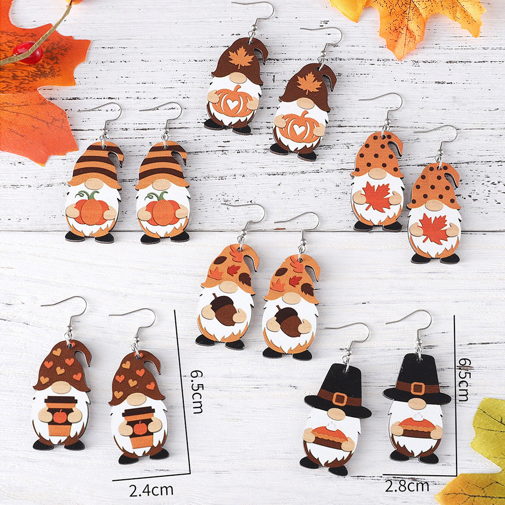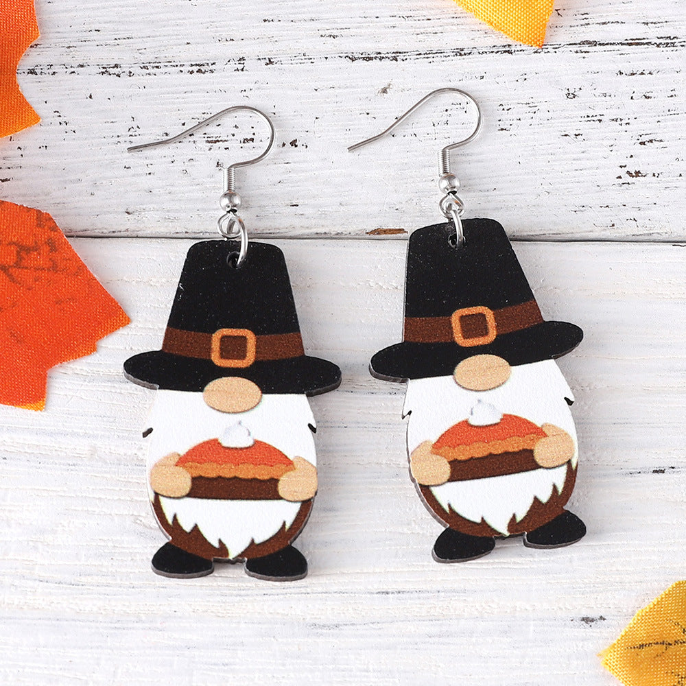 Wholesale Thanksgiving Pendant Wooden Double-Sided Earrings