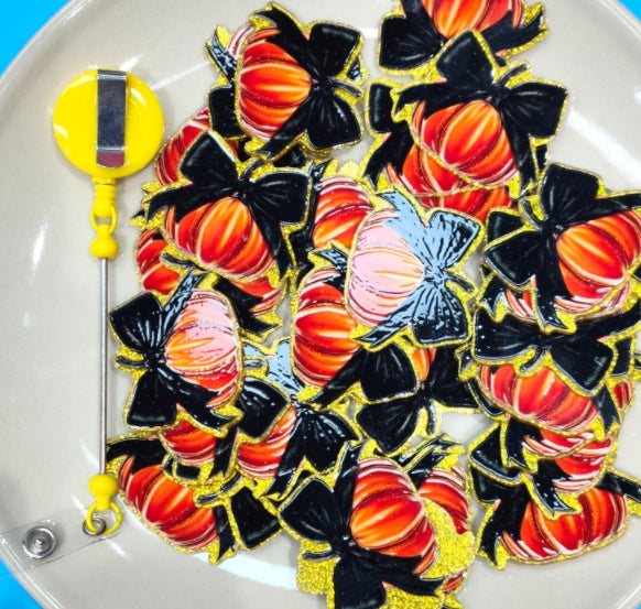 Wholesale 10pcs Halloween  Pumpkin Acrylic Flat Back Badge Scroll Keychain