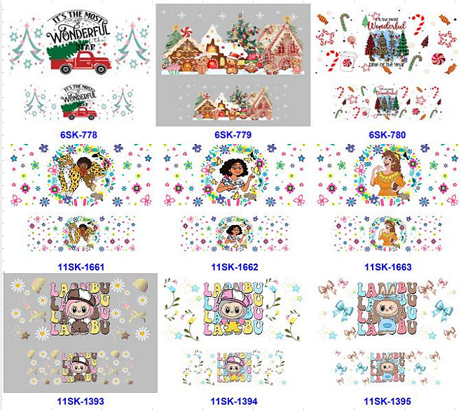 Wholesale 16pcs Various Cartoons 16oz Cup Lid Stickers
