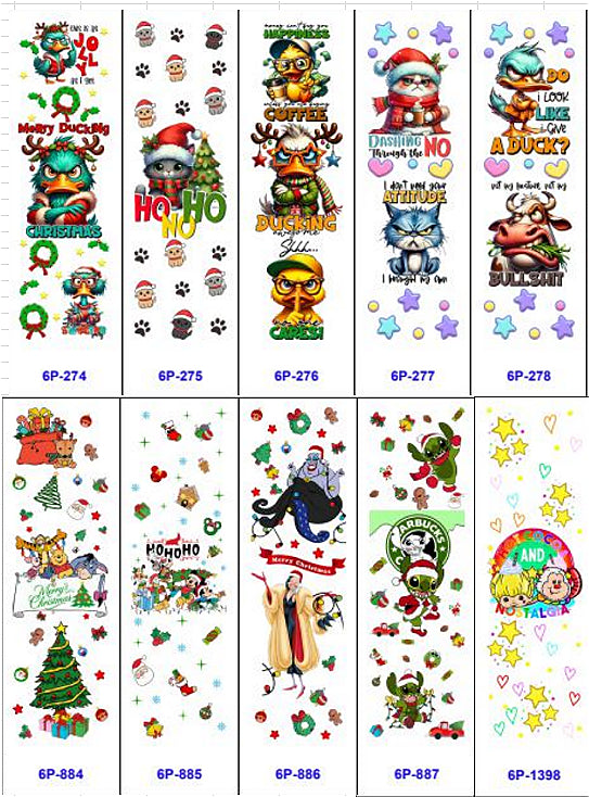 Wholesale 16pcs Funny Christmas Stockings 16oz Cup Lid Stickers