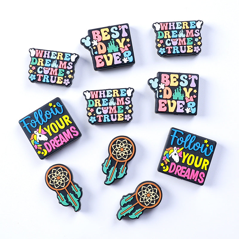 Wholesale 10pcs Solid Color Letters Creative Cartoon Silicone Beads