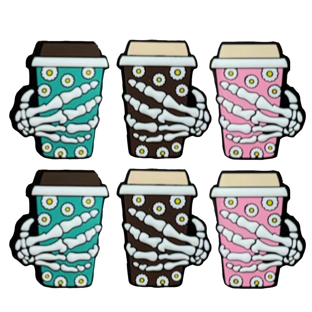 Wholesale 10pcs Cartoon Skull Holding Cup Pattern Silicone Beads