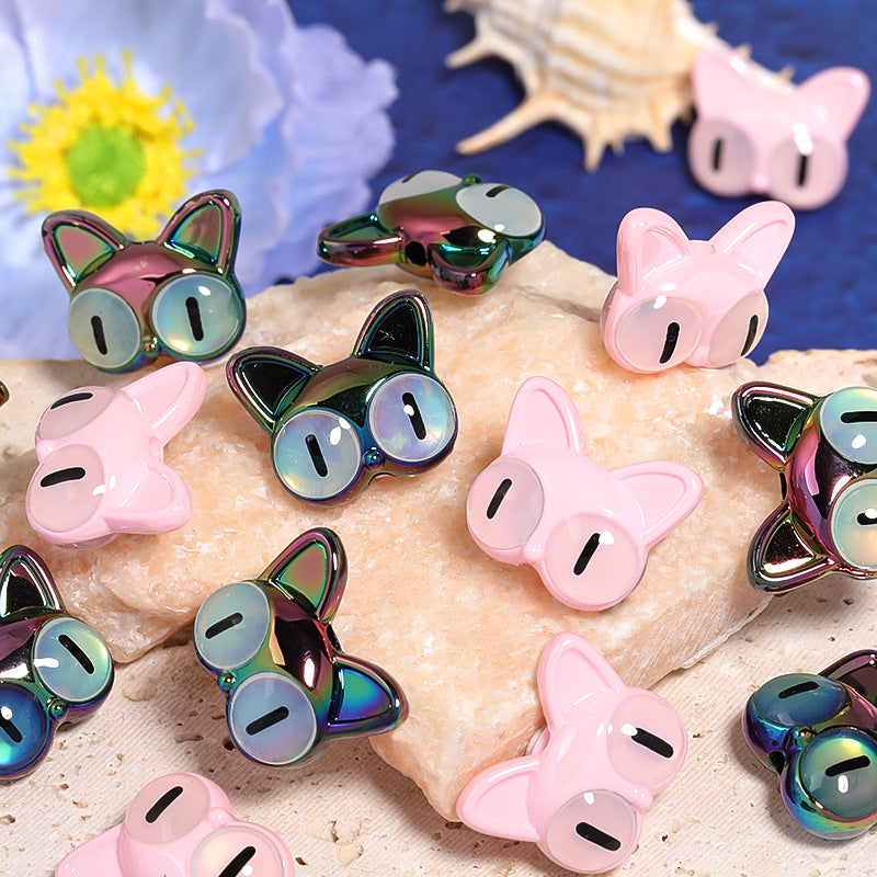 Wholesale 50pcs Cute Night Cat Acrylic Cartoon Double-sided Cat's Eye DIY Beads