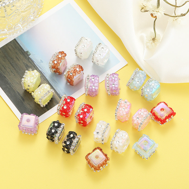 Wholesale 10pcs Heavy-duty Square Cherry Blossom Beads with Drilled Straight Holes
