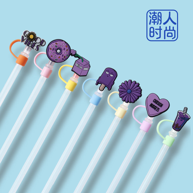 Wholesale 10mm 5PCS/SET Anime Cartoon PVC Dustproof Straw Cover
