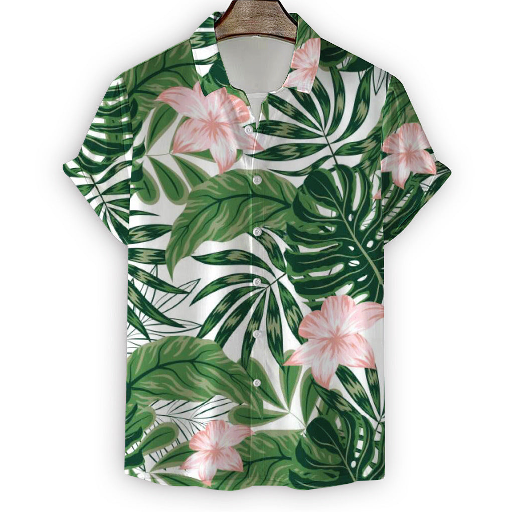 Wholesale Men's Beach Shirt 3D Digital Printing Green Plant Short Sleeve Tops